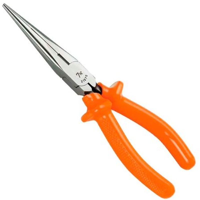 O Alicate Meia Cana Longo 7.1/2" da Sata é indicado para cortar, segura, puxar e dobrar fios, sendo altamente recomendado para profissionais mecânicos ou elétricos que realizem trabalhos em locais de difícil acesso. Fabricado em Aço Cromo-Vanádio (Cr-V) para maior durabilidade e resistência, este alicate conta com bico extrafino reto com ranhuras e corte com ajuste temperado por indução, sendo extremamente preciso. Além disso, possui cabo antideslizante isolado ergonômico e possui abas protetoras, proporcionando mais conforto e segurança ao usuário