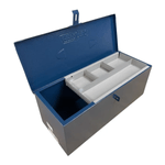 Características: Tem 1 compartimento. Medida: 40x16x15CM Tem uma alça que facilita o transporte. Inclui bandeja removível. Contém bandeja extensível. Cor: azul