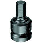 Aço-liga de alta resistência mecânica. Fosfatizado. Soquete extraresistente, para trabalhar com máquinas pneumáticas e elétricas, com Encaixe 1/2", conforme DIN 3121 - G 12.5, ISO 1174. Indicada para parafusos com sextavado interno. Permite introduzir e remover o parafuso de forma rápida. Apresenta alojamento para pino e anel de segurança. Modelo curto.