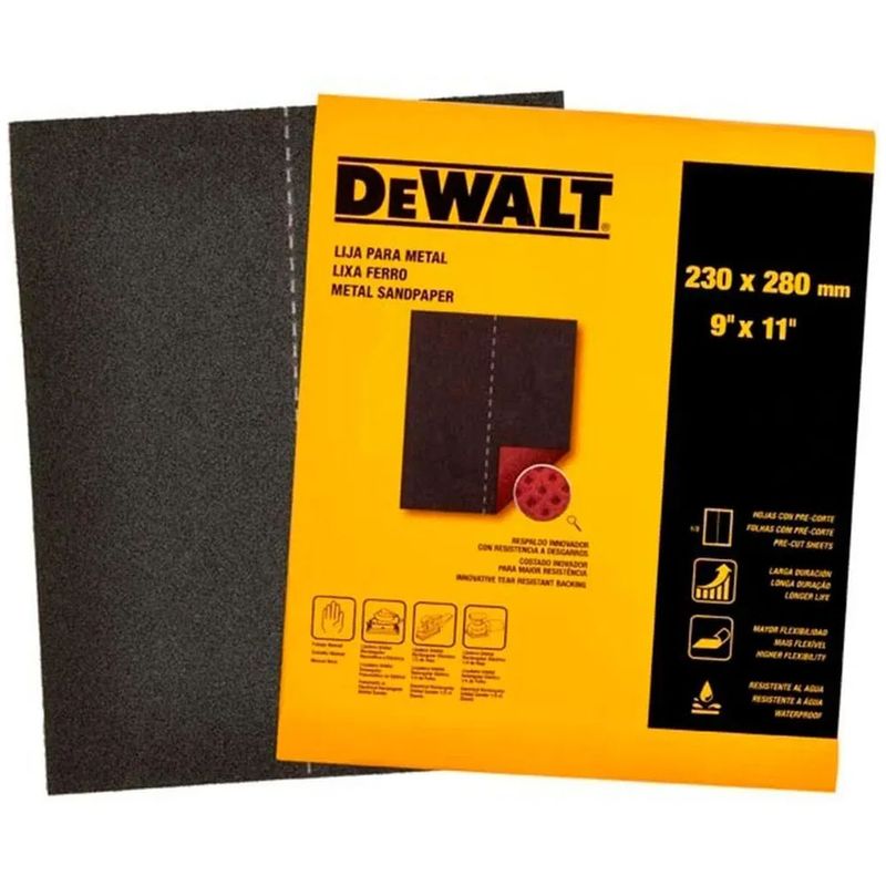 A Folha de Lixa para Ferro GR220 da Dewalt é uma lixa indicada para aplicações em alumínio, aço carbono, metais em geral, aço inoxidável e ligas de metais duros, pintura, madeira e ferrugem. Utilizada na remoção de rebarbas, essa lixa reduz imperfeições e garante um excelente resultado final. Seu costado inovador permite maior flexibilidade durante a aplicação e maior resistência e durabilidade.