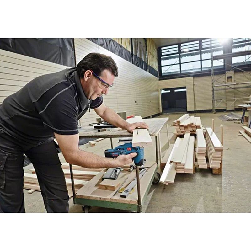 A Serra Tico-Tico a Bateria Bosch GST 12V-70, 12V, vem com coletor de pó para trabalhos mais limpos e sem poeira e com motor sem escovas de carvão livre de manutenção, com o dobro de vida útil e maior autonomia. Com 3 opções de avanço pendular, você pode escolher entre corte rápido, progresso ou cortes mais limpos. Possui seletor de velocidade para melhor controle das aplicações e luz de led frontal que permite visualização da linha de corte mesmo em ambientes mais escuros.